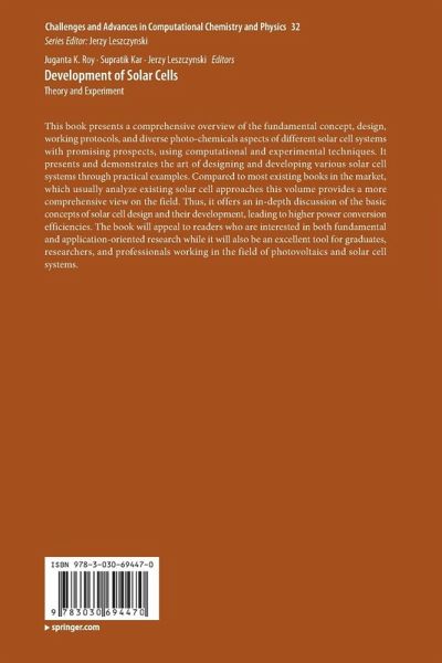 This book presents a comprehensive overview of the fundamental concept, design, working protocols, and diverse photo-chemicals aspects of different solar cell systems with promising prospects, using computational and experimental techniques. It presents and demonstrates the art of designing and developing various solar cell systems through practical examples. Compared to most existing books in the market, which usually analyze existing solar cell approaches this volume provides a more comprehensive view on the field. Thus, it offers an in-depth discussion of the basic concepts of solar cell…mehr