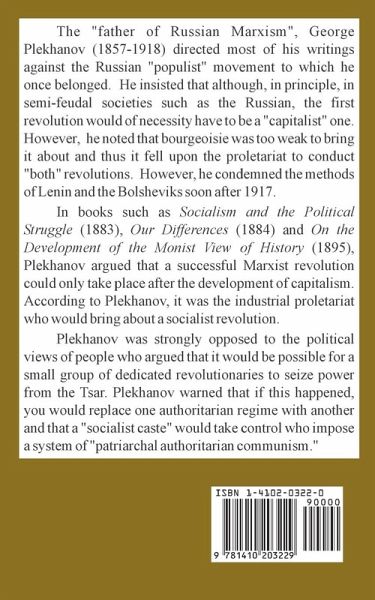 The "father of Russian Marxism", George Plekhanov (1857-1918) directed most of his writings against the Russian "populist" movement to which he once belonged. He insisted that although, in principle, in semi-feudal societies such as the Russian, the first revolution would of necessity have to be a "capitalist" one. However, he noted that bourgeoisie was too weak to bring it about and thus it fell upon the proletariat to conduct "both" revolutions. However, he condemned the methods of Lenin and the Bolsheviks soon after 1917. In books such as Socialism and the Political Struggle (1883), Our Differences (1884) and On the Development of the Monist View of History (1895), Plekhanov argued that a successful Marxist revolution could only take place after the development of capitalism. According to Plekhanov, it was the industrial proletariat who would bring about a socialist revolution. Plekhanov was strongly opposed to the political views of people who argued that it would be possible for a small group of dedicated revolutionaries to seize power from the Tsar. Plekhanov warned that if this happened, you would replace one authoritarian regime with another and that a "socialist caste" would take control who impose a system of "patriarchal authoritarian communism."
