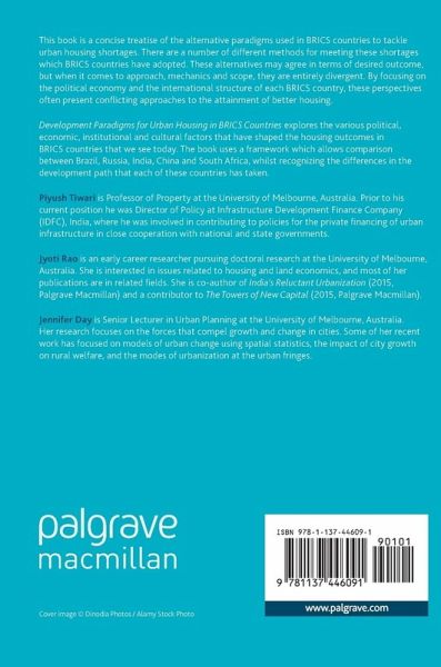 This book is a concise treatise of the alternative paradigms used in BRICS countries to tackle urban housing shortages. There are a number of alternative methods for meeting these shortages which BRICS countries have adopted. These alternatives may agree in terms of desired outcome, but when it comes to approach, mechanics and scope, they are entirely divergent. By focusing on the political economy and the international structure of each BRICS country, these perspectives present alternative and often conflicting approaches to the attainment of better housing. Development Paradigms for Urban…mehr
