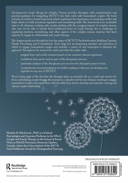 Developmental Couple Therapy for Complex Trauma provides therapists with comprehensive and practical guidance for integrating DCTCT into their work with traumatized couples. The book includes an evidence-based framework which emphasizes the importance of containing conflict and helps clients to build emotional regulation and mentalizing skills. The framework is an invaluable asset to all clinicians working with couples dealing with the ravaging impacts of complex trauma, who may not be able to benefit from traditional forms of couple therapy due to challenges in regulating emotions, mentalizing and other aspects of the complex trauma response that limit capacity to engage in relationships and couple therapy.