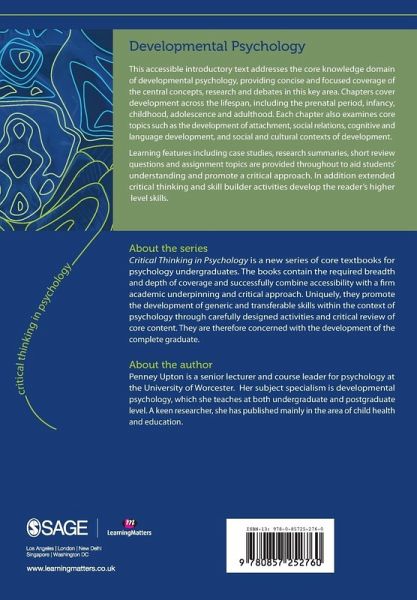 Key chapters cover development across the lifespan, including the prenatal period, infancy, childhood, adolescence and adulthood, while activities help readers build the underpinning generic critical thinking and transferable skills they need to become independent learners, and to meet the requirements of their programme of study.