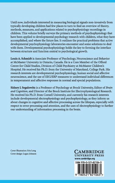 Louis A. Schmidt is an associate professor and associate chair in the Department of Psychology, Neuroscience, and Behavior at McMaster University in Ontario, Canada. He is a Core Member of the Offord Centre for Child Studies, Division of Child Psychiatry at McMaster Children's Hospital. He received his Ph.D. from the University of Maryland, College Park. His research interests are developmental psychophysiology, human social and affective neuroscience, and the use of EEG/ERP to understand individual differences in temperament and affective responses to normal and special populations. Sidney J. Segalowitz is a professor of psychology at Brock University, editor of Brain and Cognition, and Director of the Brock Institute for Electrophysiological Research. He received his Ph.D. from Cornell University, and currently his research interests include developmental electrophysiology and psychophysiology as they inform us about changes in cognitive and affective processing across the lifespan, and the uses of electrophysiology to further our understanding of information processing in the brain.