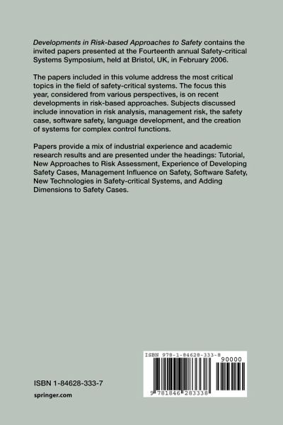 Developments in Risk-based Approaches to Safety contains the invited papers presented at the Fourteenth annual Safety-critical Systems Symposium, held at Bristol, UK in February 2006.