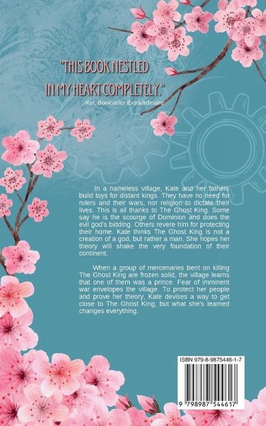 In a nameless village, Kate and her fathers build toys for distant kings. They have no need for rulers and their wars, nor religion to dictate their lives. This is all thanks to The Ghost King. Some say he is the scourge of Dominion and does the evil god's bidding. Others revere him for protecting their home. Kate thinks The Ghost King is not a creation of a god, but a man. She hopes her theory will shake the very foundation of their continent. When mercenaries try and fail to kill The Ghost King, the village learns that one of them was a prince. They fear war is imminent. To protect her people and prove her theory, Kate devises a way to get close to The Ghost King, but what she learns challenges everything.