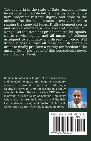 The euphoria in the state of Satu reaches nirvana levels when an old dictatorship is dislodged and a new leadership restores dignity and pride to the citizens. Yet the leaders soon prove to be choirs singing the same old tunes. Disillusionment sets in and people embrace a new voice of change, Mr. Kongo. Yet the state has propagandists, hit squads, secret service agents and all means of violence arraigned to eliminate any dissenting voice. Will Kongo survive survive all these devilish agents in order to finally proclaim a victory for freedom? The answer lie in the pages of this postcolonial novel, Devil Against Devil.