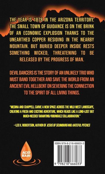 The year is 1878 in the Arizona Territory. The small town of Guidance is on the brink of an economic explosion thanks to the unearthed copper residing in the nearby mountain. But buried deeper inside rests something wicked, threatening to be released by the progress of man. Devil Dancers is the story of an unlikely trio who must band together and save the world from an ancient evil hellbent on severing the connection to the spirit of all living things.