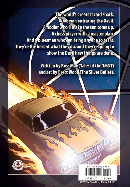 The world's greatest card shark. A woman outracing the Devil. A fiddler who'll make the sun come up. A chess player with a master plan. And a bluesman who can bring anyone to tears. They're the best at what they do, and they're going to show the Devil how things are done. Written by Ross May (Tales of the TMNT) and art by Brett Wood (The Silver Bullet).
