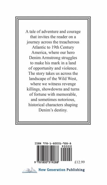 A tale of adventure and courage that invites the reader on a journey across the treacherous Atlantic to 19th Century America, where our hero Denim Armstrong struggles to make his mark in a land of opportunity and violence. The story takes us across the landscape of the Wild West, where we witness revenge killings, showdowns and turns of fortune with memorable, and sometimes notorious, historical characters shaping Denim's destiny.