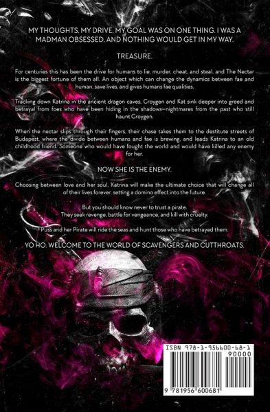 My thoughts, my drive, my goal was on one thing. I was a madman obsessed, and nothing would get in my way. Treasure. For centuries this has been the drive for humans to lie, murder, cheat, and steal, and The Nectar is the biggest fortune of them all. An object which can change the dynamics between fae and human, save lives, and gives humans fae qualities. Tracking down Katrina in the ancient dragon caves, Croygen and Kat sink deeper into greed and betrayal from foes who have been hiding in the shadows-nightmares from the past who still haunt Croygen. When the nectar slips through their fingers, their chase takes them to the destitute streets of Budapest, where the divide between humans and fae is brewing, and leads Katrina to an old childhood friend. Someone who would have fought the world and would have killed any enemy for her. Now she is the enemy. Choosing between love and her soul, Katrina will make the ultimate choice that will change all of their lives forever, setting a domino effect into the future. But you should know never to trust a pirate. They seek revenge, battle for vengeance, and kill with cruelty. Puss and her Pirate will ride the seas and hunt those who have betrayed them. Yo Ho. Welcome to the world of scavengers and cutthroats.