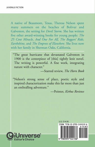 "The great hurricane that devastated Galveston in 1900 is the centerpiece of [this] tightly knit novel. The writing is powerful. A fine work, integrating nature with character." -Starred review, The Horn Book "Nelson's strong sense of place, poetic style and inspired characterization make this far more than just an enthralling adventure." -Pointer, Kirkus Reviews