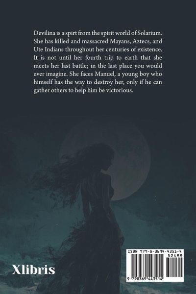 Devilina is a spirt from the spirit world of Solarium. She has killed and massacred Mayans, Aztecs, and Ute Indians throughout her centuries of existence. It is not until her fourth trip to earth that she meets her last battle; in the last place you would ever imagine. She faces Manuel, a young boy who himself has the way to destroy her, only if he can gather others to help him be victorious.
