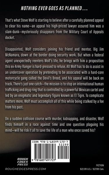 "Nothing ever goes as planned... That's what Steve Wolf is starting to believe after a carefully planned appeal to clear his name-an appeal his high-priced lawyer assured him was a slam-dunk-mysteriously disappears from the Military Court of Appeals docket. Disappointed, Wolf considers joining his friend and mentor, Big Jim McNamara, down at the border doing security work. But when a federal agent unexpectedly reenters Wolf's life, he brings with him a proposition this ex-Army Ranger is hard-pressed to refuse. All Wolf has to do is assist in an undercover operation by pretending to be associated with a hard-core motorcycle gang called the Devil's Breed, and his appeal will be back on track. There's just one catch-the mission is to stop an international human trafficking and drug ring that is controlled by a powerful Mexican cartel and led by an enigmatic and legendary figure known as El Tigre. To complicate matters more, Wolf must accomplish all of this while being stalked by a foe from his past. On a sudden collision course with murder, kidnapping, and disaster, Wolf finds himself in a race against time and one question plaguing his mind-will he risk it all to save the life of a man who once saved his?"--