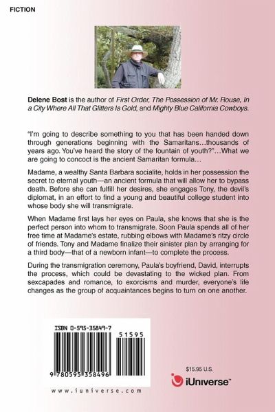'I'm going to describe something to you that has been handed down through generations beginning with the Samaritans.thousands of years ago. You've heard the story of the fountain of youth?".What we are going to concoct is the ancient Samaritan formula. Madame, a wealthy Santa Barbara socialite, holds in her possession the secret to eternal youth-an ancient formula that will allow her to bypass death. Before she can fulfill her desires, she engages Tony, the devil's diplomat, in an effort to find a young and beautiful college student into whose body she will transmigrate. When Madame first lays her eyes on Paula, she knows that she is the perfect person into whom to transmigrate. Soon Paula spends all of her free time at Madame's estate, rubbing elbows with Madame's ritzy circle of friends. Tony and Madame finalize their sinister plan by arranging for a third body-that of a newborn infant-to complete the process. During the transmigration ceremony, Paula's boyfriend, David, interrupts the process, which could be devastating to the wicked plan. From sexcapades and romance, to exorcisms and murder, everyone's life changes as the group of acquaintances begins to turn on one another.