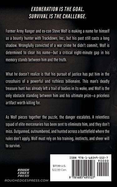 Exoneration is the goal. Survival is the challenge. Former Army Ranger and ex-con Steve Wolf is making a name for himself as a bounty hunter with Trackdown, Inc., but his past still casts a long shadow. Wrongfully convicted of a war crime he didn't commit, Wolf is determined to clear his name-but a critical eight-minute gap in his memory stands between him and the truth. What he doesn't realize is that his pursuit of justice has put him in the crosshairs of a powerful and ruthless billionaire. This man's deadly treasure hunt has already left a trail of bodies in its wake, and Wolf is the only obstacle standing between him and his ultimate prize-a priceless artifact worth killing for. As Wolf pieces together the puzzle, the danger escalates. A relentless squad of elite mercenaries has been sent to eliminate him, and they don't miss. Outgunned, outnumbered, and hunted across a battlefield where the rules don't apply, Wolf must rely on his training, instincts, and sheer will to survive.
