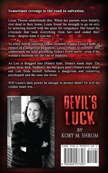 Sometimes revenge is the road to salvation. Louie Thorne understands this. When her parents were brutally shot dead in their home, Louie found the strength to go on only by armoring herself with the quest for vengeance. She found the criminals that took everything from her--and ended their lives--despite what it cost her. So when fellow huntress Diana Dennard crosses Louie's path, in pursuit of a dangerous pedophile, Louie refuses to interfere. She understands the need governing Diana's every move--even if the woman's methods toe the line of madness. As Lou is dragged into Diana's hunt, Diana's mask slips. The game turns dark. Suddenly the bad guys aren't Diana's only target and Lou finds herself between a dangerous and conniving psychopath and the ones she loves. Will Louie's dark power be enough to protect them? Or will the coldest heart win...