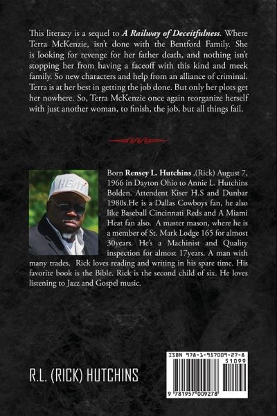 This literacy is a sequel to A Railway of Deceitfulness. Where Terra McKenzie, isn't done with the Bentford Family. She is looking for revenge for her father's death, and nothing isn't stopping her from having a faceoff with this kind and meek family. So new characters and help from an alliance of criminals. Terra is at her best in getting the job done. But only her plots get her nowhere. So, Terra McKenzie once again reorganizes herself with just another woman to finish the job, but all things fail.