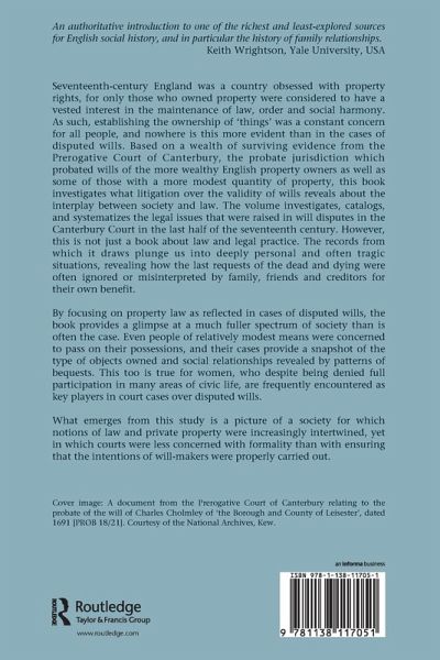 Contents: Preface; Introduction: devising, dying, and dispute in early modern England; The 'culture of will-making' in early modern England. Part I The Forum and Its Litigation: Probate jurisdiction in early modern England: England's own 'peculiar institution' in crisis; Disputes: the subject matter of testamentary litigation. Part II The Legal Issues: Mental Element in Will-Making and the Authenticity of Legal Acts: 'Of sound and disposing mind and memory': testamentary capacity and undue influence; Estate plans by 'word of mouth': the validity of nuncupative wills; The sanctity of the written word: testamentary causes challenging the authenticity and due execution of written wills; Which shall it be? Multiple testamentary documents and the revocation of wills. Part III Windows into Social Relationships: Contested successions and contested marriages: evidence from the records of the Prerogative Court of Canterbury; Discord and inheritance: windows into family relations from testamentary litigation; The myriad roles of women in will-making and testamentary litigation in late 17th century England; Conclusion; Appendix; Bibliography; Index.