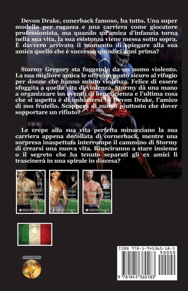 Devon Drake, conerback famoso, ha tutto. Una super modella per ragazza e una carriera come giocatore professionista, ma quando un’amica d’infanzia torna nella sua vita, la sua esistenza viene messa sotto sopra. È davvero arrivato il momento di spiegare alla sua amica quello che è successo quindici anni prima? Stormy Gregory sta fuggendo da un uomo violento. La sua migliore amica le offre un posto sicuro al rifugio per donne che hanno subito violenza. Felice di essere sfuggita a quella vita di violenza, Stormy dà una mano a organizzare un evento di beneficienza e l’ultima cosa che si aspetta è di imbattersi in Devon Drake, l’amico di suo fratello. Scapperà di nuovo piuttosto che dover sopportare un rifiuto? Le crepe alla sua vita perfetta minacciano la sua carriera appena decollata di cornerback, mentre una sorpresa inaspettata interrompe il cammino di Stormy di crearsi una nuova vita. Riusciranno a stare insieme o il segreto che ha tenuto separati gli ex amici li trascinerà in una spirale in discesa?