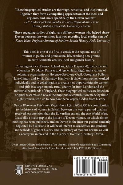 This book is one of the first to study the role of women in public and professional life from a regional point of view. It breaks new ground in considerations of gender in the early twentieth century and the history of Devon in the modern period.