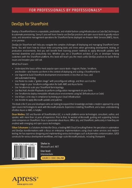 DevOps for SharePoint will help you navigate the complex challenges of deploying and managing SharePoint Server farms. You will learn how to reduce time-consuming tasks and errors when generating development, testing, or production environments. And you will benefit from learning proven methods to apply Microsoft updates with minimal downtime and productivity loss. Whether you are a SharePoint architect, IT pro, or developer helping customers with the SharePoint platform, this book will teach you the most useful DevOps practices to tackle those issues and broaden your skill set.