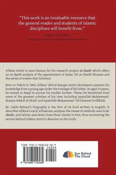 All¿ma Amini is most famous for his research project al-Ghadir which offers an in-depth analysis of the appointment of Imam Ali at Ghadir Khumm and the series of events that followed. Born in Tabriz in 1902, Allama 'Abd al-Husayn Amini developed a passion for knowledge from a young age under the tutelage of his father. At aged 14 years, he moved to Najaf to pursue his studies further. Dr. Fakhr-Rohani's biography is the first of its kind written in English. It describes Allama's early influences, analyses the research methods used in al-Ghadir, and relates anecdotes from those closest to him, thus uncovering the secrets behind Allama Amini's devotion to the truth.