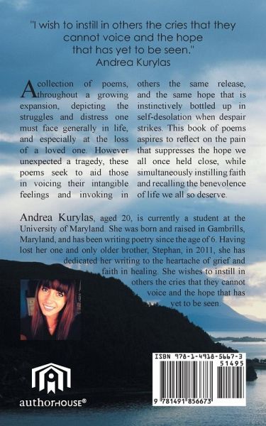 A collection of poems, throughout a growing expansion, depicting the struggles and distress one must face generally in life, and especially at the loss of a loved one. However unexpected a tragedy, these poems seek to aid those in voicing their intangible feelings and invoking in others the same release, and the same hope that is instinctively bottled up in self-desolation when despair strikes. This book of poems aspires to reflect on the pain that suppresses the hope we all once held close, while simultaneously instilling faith and recalling the benevolence of life we all so deserve.