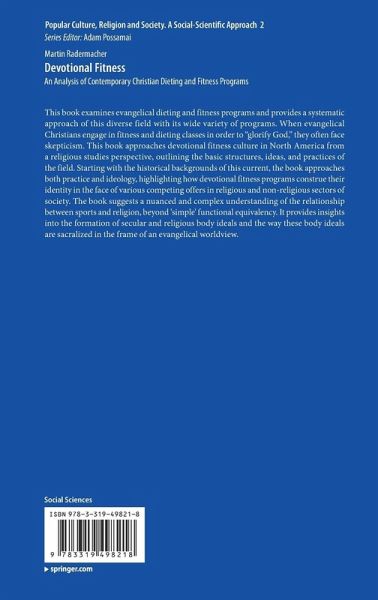 This book examines evangelical dieting and fitness programs and provides a systematic approach of this diverse field with its wide variety of programs. When evangelical Christians engage in fitness and dieting classes in order to "glorify God," they often face skepticism. This book approaches devotional fitness culture in North America from a religious studies perspective, outlining the basic structures, ideas, and practices of the field. Starting with the historical backgrounds of this current, the book approaches both practice and ideology, highlighting how devotional fitness programs construe their identity in the face of various competing offers in religious and non-religious sectors of society. The book suggests a nuanced and complex understanding of the relationship between sports and religion, beyond 'simple' functional equivalency. It provides insights into the formation of secular and religious body ideals and the way these body ideals are sacralized in the frame of an evangelical worldview.
