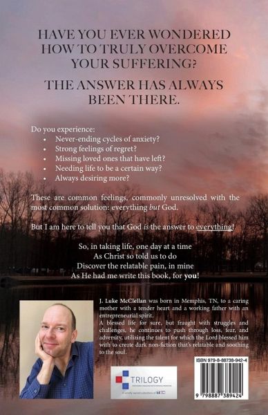 HAVE YOU EVER WONDERED HOW TO TRULY OVERCOME YOUR SUFFERING? THE ANSWER HAS ALWAYS BEEN THERE. Do you experience:Never-ending cycles of anxiety? Strong feelings of regret? Missing loved ones that have left? Needing life to be a certain way? Always desiring more? These are common feelings, commonly unresolved with the most common solution: everything but God. But I am here to tell you that God is the answer to everything! So, in taking life, one day at a time As Christ so told us to do Discover the relatable pain, in mine As He had me write this book, for you!