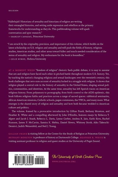 At a moment when “freedom of religion” rhetoric fuels public debate, it is easy to assume that sex and religion have faced each other in pitched battle throughout modern U.S. history. Yet, by tracking the nation’s changing religious and sexual landscapes over the twentieth century, this book challenges that zero-sum account of sexuality locked in a struggle with religion. It shows that religion played a central role in the history of sexuality in the United States, shaping sexual politics, communities, and identities. At the same time, sexuality has left lipstick traces on American religious history. From polyamory to pornography, from birth control to the AIDS epidemic, this book follows religious faiths and practices across a range of sacred spaces: rabbinical seminaries, African American missions, Catholic schools, pagan communes, the YWCA, and much more. What emerges is the shared story of religion and sexuality and how both became wedded to American culture and politics. The volume, framed by a provocative introduction by Gillian Frank, Bethany Moreton, and Heather R. White and a compelling afterword by John D’Emilio, features essays by Rebecca T. Alpert and Jacob J. Staub, Rebecca L. Davis, Lynne Gerber, Andrea R. Jain, Kathi Kern, Rachel Kranson, James P. McCartin, Samira K. Mehta, Daniel Rivers, Whitney Strub, Aiko Takeuchi-Demirci, Judith Weisenfeld, and Neil J. Young.