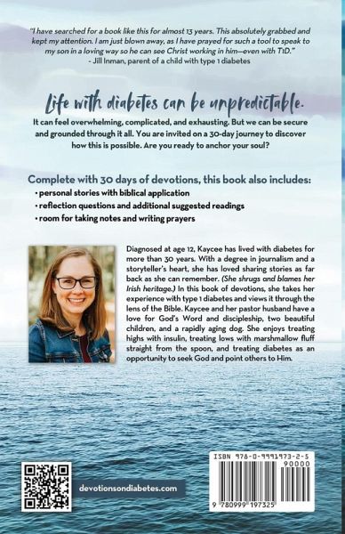 Life with diabetes can be unpredictable. It can feel overwhelming, complicated, and exhausting. But we can be secure and grounded through it all. You are invited on a 30-day journey to discover how this is possible. Are you ready to anchor your soul? Complete with 30 days of devotions, this book also includes:personal stories with biblical application reflection questions additional suggested readings room to journal, take notes, and write prayers Perfect for a diabetic warrior or someone newly diagnosed. This devotional journal connects diabetes and faith in an encouraging way for any reader.