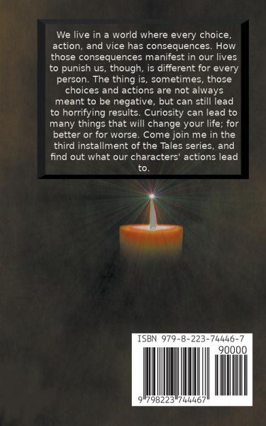 We live in a world where every choice, action, and vice has consequences. How those consequences manifest in our lives to punish us, though, is different for every person. The thing is, sometimes, those choices and actions are not always meant to be negative, but can still lead to horrifying results. Curiosity can lead to many things that will change your life; for better or for worse. Come join me in the third installment of the Tales series, and find out what our characters' actions lead to.