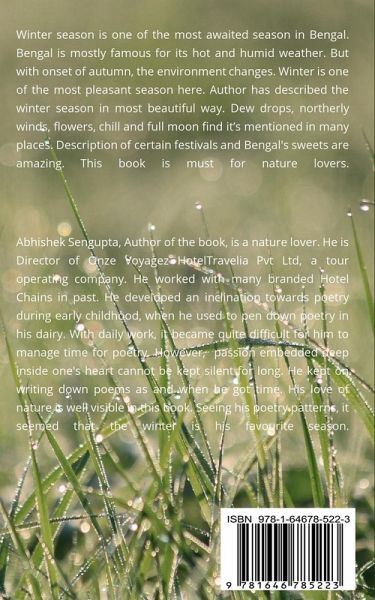 WinterseasonisoneofthemostawaitedseasoninBengal.Bengalismostlyfamousforitshotandhumidweather.Butwithonsetofautumn,theenvironmentchanges.Winterisoneofthemostpleasantseasonhere.Authorhasdescribedthewinterseasoninmostbeautifulway.Dewdrops,northerlywinds,flowers,chillandfullmoonfinditsmentionedinmanyplaces.DescriptionofcertainfestivalsandBengal'ssweetsareamazing.Thisbookisamustfornaturelovers.