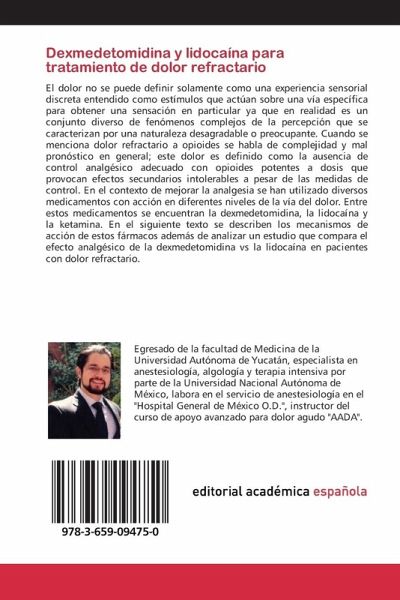 El dolor no se puede definir solamente como una experiencia sensorial discreta entendido como estímulos que actúan sobre una vía específica para obtener una sensación en particular ya que en realidad es un conjunto diverso de fenómenos complejos de la percepción que se caracterizan por una naturaleza desagradable o preocupante. Cuando se menciona dolor refractario a opioides se habla de complejidad y mal pronóstico en general; este dolor es definido como la ausencia de control analgésico adecuado con opioides potentes a dosis que provocan efectos secundarios intolerables a pesar de las medidas de control. En el contexto de mejorar la analgesia se han utilizado diversos medicamentos con acción en diferentes niveles de la vía del dolor. Entre estos medicamentos se encuentran la dexmedetomidina, la lidocaína y la ketamina. En el siguiente texto se describen los mecanismos de acción de estos fármacos además de analizar un estudio que compara el efecto analgésico de la dexmedetomidinavs la lidocaína en pacientes con dolor refractario.