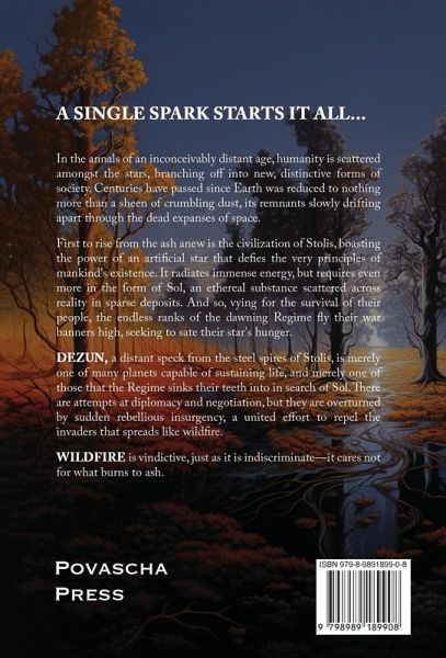 "First to rise from the ash anew is the civilization of Stolis, boasting the power of an artificial star that defies the very principles of mankind's existence. It radiates immense energy, but requires even more in the form of Sol, an ethereal substance scattered across reality in sparse deposits. And so, vying for the survival of their people, the endless ranks of the dawning Regime fly their war banners high, seeking to sate their star's hunger. Dezun, a distant speck from the steel spires of Stolis, is merely one of many planets capable of sustaining life, and merely one of those that the Regime sinks their teeth into in search of Sol. There are attempts at diplomacy and negotiation, but they are overturned by sudden rebellious insurgency, a united effort to repel the invaders that spreads like wildfire. Wildfire is vindictive, just as it is indiscriminate-it cares not for what burns to ash."--Provided by publisher.