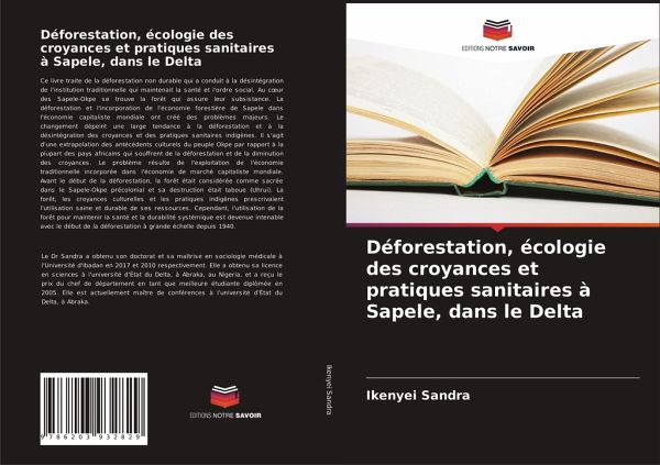 Ce livre traite de la déforestation non durable qui a conduit à la désintégration de l'institution traditionnelle qui maintenait la santé et l'ordre social. Au coeur des Sapele-Okpe se trouve la forêt qui assure leur subsistance. La déforestation et l'incorporation de l'économie forestière de Sapele dans l'économie capitaliste mondiale ont créé des problèmes majeurs. Le changement dépeint une large tendance à la déforestation et à la désintégration des croyances et des pratiques sanitaires indigènes. Il s'agit d'une extrapolation des antécédents culturels du peuple Okpe par rapport à la plupart des pays africains qui souffrent de la déforestation et de la diminution des croyances. Le problème résulte de l'exploitation de l'économie traditionnelle incorporée dans l'économie de marché capitaliste mondiale. Avant le début de la déforestation, la forêt était considérée comme sacrée dans le Sapele-Okpe précolonial et sa destruction était taboue (Uhrui). La forêt, les croyances culturelles et les pratiques indigènes prescrivaient l'utilisation saine et durable de ses ressources. Cependant, l'utilisation de la forêt pour maintenir la santé et la durabilité systémique est devenue intenable avec le début de la déforestation à grande échelle depuis 1940.
