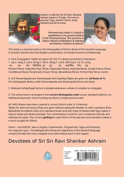 This book is a seminal work on the Dhatupatha of Panini, Roots of the Sanskrit Language. It contains Sanskrit text and English commentary. It includes Accents and Meanings. A. Verb Conjugation Tables are given for the 10 Lakaras prominent in literature. 1. Lä 2. Läg 3. Lö 4. VLi¿g 5. L¿t 6. L¿i¿g 7. Lü 8. ¿¿¿rLi¿g 9. Li¿ 10. LU¿g ¿¿¿ ¿¿¿ ¿¿¿¿ ¿¿¿¿¿¿¿¿ ¿¿¿¿ ¿¿¿¿ ¿¿¿¿ ¿¿¿¿¿¿¿¿¿ ¿¿¿¿ ¿¿¿¿ Present Tense, Imperfect Past Tense, Imperative Mood, Potential Mood, Simple Future Tense, Conditional Mood, Periphrastic Future Tense, Benedictive Mood, Perfect Past Tense, Aorist. B. 3x3 Parasmaipada and Atmanepada Verb Spelling Tables are given for all Roots of 1c. For Ubhayepadi dhatus, both Parasmaipada and Atmanepada forms are listed. C. Relevant Ashtadhyayi Sutra is indicated whenever a dhatu is complex to conjugate. D. The entire book is arranged in the correct Dhatupatha order as per standard editions, viz. Siddhanta Kaumudi. Hence locating any Root is simple and accurate. All 1943 Dhatus have been covered in correct Panini order in 3 Volumes. Tables for each and every Dhatu are given without asking the Reader to refer a previous Root. Beautifully formatted index as in standard books and also index of dhatus with tags makes it easy to locate any dhatu precisely. The commentary is lucid for use in Grammar Schools and Vedanta Gurukuls. The correct spelling for each Verb in three persons and numbers makes it a much sought for Edition. Panini - circa 600 BC, was a Linguist, Grammarian, Programmer, Sage and Visionary. His magnum opus - Ashtadhyayi - describing the Vyakarana of the Sanskrit language remains till date the most complete and authoritative work in this regard.