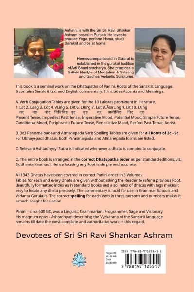 This book is a seminal work on the Dhatupatha of Panini, Roots of the Sanskrit Language. It contains Sanskrit text and English commentary. It includes Accents and Meanings. A. Verb Conjugation Tables are given for the 10 Lakaras prominent in literature. 1. Lä 2. Läg 3. Lö 4. VLi¿g 5. L¿t 6. L¿i¿g 7. Lu¿ 8. ¿¿¿rLi¿g 9. Li¿ 10. LU¿g ¿¿¿ ¿¿¿ ¿¿¿¿ ¿¿¿¿¿¿¿¿ ¿¿¿¿ ¿¿¿¿ ¿¿¿¿ ¿¿¿¿¿¿¿¿¿ ¿¿¿¿ ¿¿¿¿ Present Tense, Imperfect Past Tense, Imperative Mood, Potential Mood, Simple Future Tense, Conditional Mood, Periphrastic Future Tense, Benedictive Mood, Perfect Past Tense, Aorist. B. 3x3 Parasmaipada and Atmanepada Verb Spelling Tables are given for all Roots of 2c - 9c. For Ubhayepadi dhatus, both Parasmaipada and Atmanepada forms are listed. C. Relevant Ashtadhyayi Sutra is indicated whenever a dhatu is complex to conjugate. D. The entire book is arranged in the correct Dhatupatha order as per standard editions, viz. Siddhanta Kaumudi. Hence locating any Root is simple and accurate. All 1943 Dhatus have been covered in correct Panini order in 3 Volumes. Tables for each and every Dhatu are given without asking the Reader to refer a previous Root. Beautifully formatted index as in standard books and also index of dhatus with tags makes it easy to locate any dhatu precisely. The commentary is lucid for use in Grammar Schools and Vedanta Gurukuls. The correct spelling for each Verb in three persons and numbers makes it a much sought for Edition. Panini - circa 600 BC, was a Linguist, Grammarian, Programmer, Sage and Visionary. His magnum opus - Ashtadhyayi - describing the Vyakarana of the Sanskrit language remains till date the most complete and authoritative work in this regard.