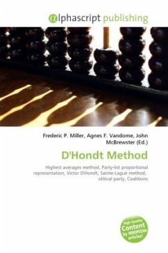 High Quality Content by WIKIPEDIA articles! The d'Hondt method (mathematically but not operationally equivalent to Jefferson's method, and Bader-Ofer method) is a highest averages method for allocating seats in party-list proportional representation. The method is named after Belgian mathematician Victor D'Hondt. This system is less proportional than the other popular divisor method, Sainte-Laguë, because d'Hondt slightly favors large parties and coalitions over scattered small parties. Legislatures using this system include those of Albania, Argentina, Austria, Belgium, Brazil, Bulgaria, Chile, Colombia, Croatia, Czech Republic, Denmark, East Timor, Ecuador, Estonia, Finland, Hungary, Iceland, Israel, Japan, Republic of Macedonia, Republic of Moldova, Montenegro, the Netherlands, Northern Ireland, Paraguay, Poland, Portugal, Romania, Scotland, Serbia, Slovenia, Spain, Turkey, Venezuela and Wales.
