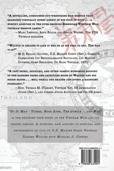 "A revealing, sometimes gut-wrenching war memoir that examines virtually every aspect of his tour of duty." -Marc Leepson, Arts Editor and Senior Writer, The VVA Veteran magazine In 1969, Darren Walton, at the tender age of nineteen, enlisted in the U.S. Marine Corps, trading life in idyllic Marin County in California for the chaos of a raging jungle war in Southeast Asia. In no time, he got pressed into service as a member of a Marine reconnaissance unit operating near Da Nang, Vietnam. There were a few times when he basked in the breathtaking beauty of the triple canopy jungle, the contoured glistening mountain ridges, and the luscious green valleys. But there were many, many other times when he and his fellow Marines labored under the terror of the worst the jungle had to offer: torrential monsoons, torturous humidity, rapacious insects, and enemy-placed punji traps springing from hell below. Darren survived thanks to the unconditional loyalty and courage of his fellow Marines, men who risked their own lives to save his, men who demonstrated uncommon courage in the most desperate of circumstances. No questions asked. No conditions imposed. No social barriers erected. Semper Fidelis. Di Di Mau is Darren's unabashed personal account of warfare, survival, and brotherhood-and the enduring reflections that followed. It is unlike any book about the Vietnam War.