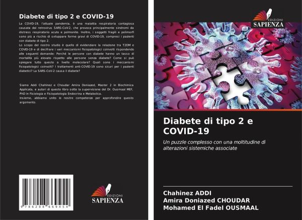 La COVID-19, l'attuale pandemia, è una malattia respiratoria contagiosa causata dal retrovirus SARS-CoV-2, che provoca principalmente sindromi da distress respiratorio acuto e polmonite. Inoltre, i soggetti fragili e polimorfi sono più a rischio di sviluppare forme gravi di COVID-19, compresi i pazienti con diabete di tipo 2.Lo scopo del nostro studio è quello di evidenziare la relazione tra T2DM e COVID-19 e di decifrare i vari meccanismi fisiopatologici coinvolti rispondendo alle seguenti domande: Perché le persone con diabete hanno un tasso di mortalità più elevato rispetto alle persone senza diabete? Come si può spiegare tutto questo a livello molecolare? Quali sono i meccanismi fisiopatologici coinvolti? I trattamenti anti-COVID-19 sono sicuri per i pazienti diabetici? La SARS-CoV-2 causa il diabete?