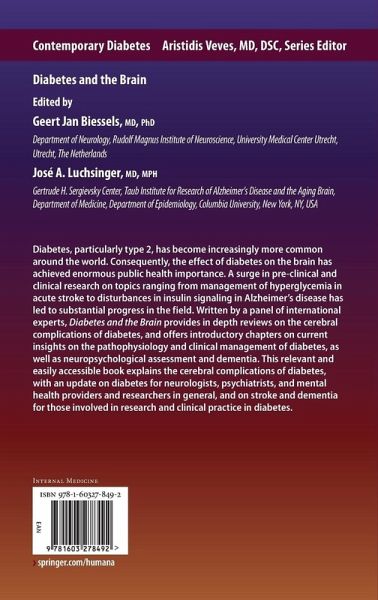 "Geert Biessels and José Luchsinger have organized and delivered a compelling review of a variety of ways in which diabetes affects the brain. ... this new book is a welcome addition. ... designed primarily for neurologists, on type 1 and type 2 diabetes. ... Each chapter has been thoroughly prepared and well referenced by one or more experts in the relevant topic. ... Thus, one can easily scan the book and rapidly extract its key messages. ... recommended to diabetologists, neurologists, and other health professionals." (John A. Colwell, Journal of the American Medical Association, Vol. 304 (6), August, 2010)