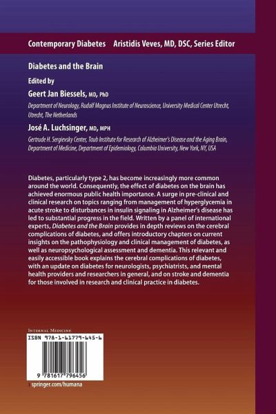 "Geert Biessels and José Luchsinger have organized and delivered a compelling review of a variety of ways in which diabetes affects the brain. ... this new book is a welcome addition. ... designed primarily for neurologists, on type 1 and type 2 diabetes. ... Each chapter has been thoroughly prepared and well referenced by one or more experts in the relevant topic. ... Thus, one can easily scan the book and rapidly extract its key messages. ... recommended to diabetologists, neurologists, and other health professionals." (John A. Colwell, Journal of the American Medical Association, Vol. 304 (6), August, 2010)