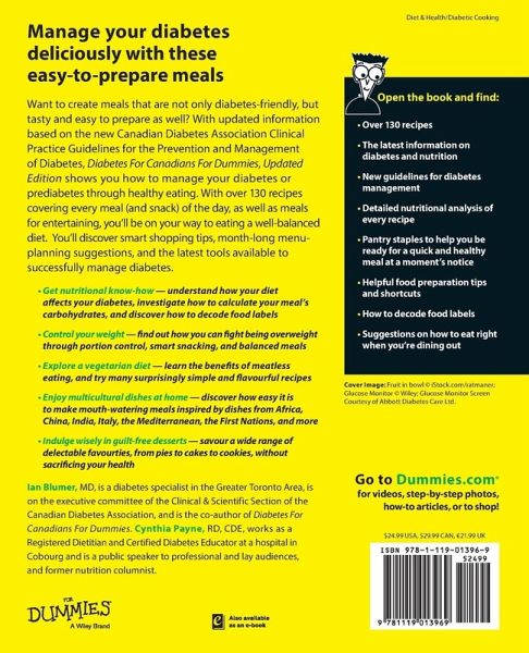 Ian Blumer, MD, is a diabetes specialist in the Greater Toronto Area, is on the executive committee of the Clinical & Scientific Section of the Canadian Diabetes Association, and is the co-author of Diabetes For Canadians For Dummies. Cynthia Payne, RD, CDE, works as a Registered Dietitian and Certified Diabetes Educator at a hospital in Cobourg and is a public speaker to professional and lay audiences, and former nutrition columnist.