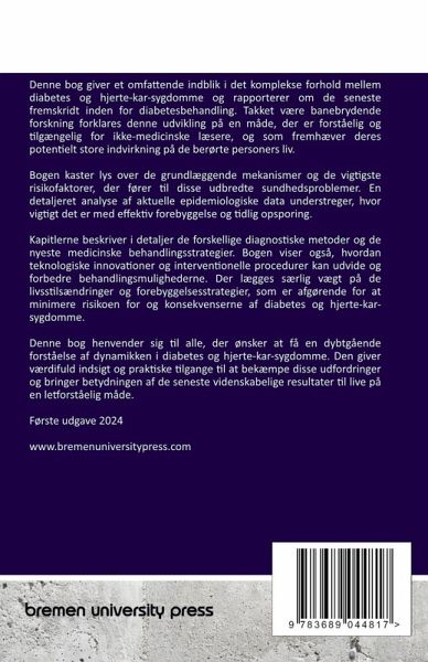Denne bog giver et omfattende indblik i det komplekse forhold mellem diabetes og hjerte-kar-sygdomme og rapporterer om de seneste fremskridt inden for diabetesbehandling. Takket være banebrydende forskning forklares denne udvikling på en måde, der er forståelig og tilgængelig for ikke-medicinske læsere, og som fremhæver deres potentielt store indvirkning på de berørte personers liv. Bogen kaster lys over de grundlæggende mekanismer og de vigtigste risikofaktorer, der fører til disse udbredte sundhedsproblemer. En detaljeret analyse af aktuelle epidemiologiske data understreger, hvor vigtigt det er med effektiv forebyggelse og tidlig opsporing. Kapitlerne beskriver i detaljer de forskellige diagnostiske metoder og de nyeste medicinske behandlingsstrategier. Bogen viser også, hvordan teknologiske innovationer og interventionelle procedurer kan udvide og forbedre behandlingsmulighederne. Der lægges særlig vægt på de livsstilsændringer og forebyggelsesstrategier, som er afgørende for at minimere risikoen for og konsekvenserne af diabetes og hjerte-kar-sygdomme. Denne bog henvender sig til alle, der ønsker at få en dybtgående forståelse af dynamikken i diabetes og hjerte-kar-sygdomme. Den giver værdifuld indsigt og praktiske tilgange til at bekæmpe disse udfordringer og bringer betydningen af de seneste videnskabelige resultater til live på en letforståelig måde.