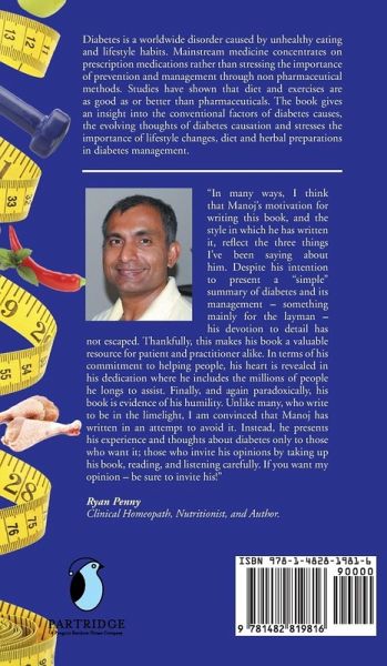 "Diabetes; Alternative Thoughts" takes a different approach to diabetes management. The book tries to explain the disease,its complications in simple language and gives evidences for effect of lifestyle and exercises in diabetes management. The chapters gives glimpses of Ayurvedic outlook for diabetes and some commonly used herbs in diabetes with scientific evidences.The author is not refuting the importance of conventional approaches in diabetes management or consider this book as a self help guide to treat diabetes.On the contrary tries to create an awareness among medical practitioners and the public to have a serious consideration of alternative methods which are equally powerful as prescription pills. It would serve as a mini reference book for medical practitioners and public.