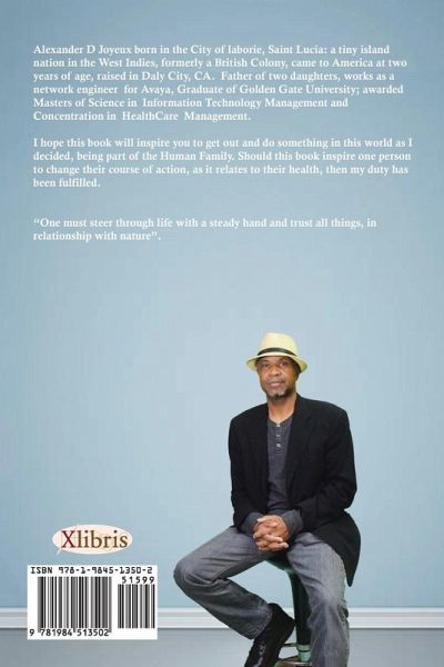 I hope this book will inspire you to get out and do something in this world as I decided, being part of the Human Family. Should this book inspire one person to change their course of action, as it relates to their health, then my duty has been fulfilled. "One must steer through life with a steady hand and trust all things, in relationshipt with nature."