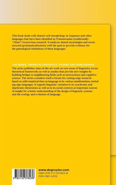 This book deals with shared verb morphology in Japanese and other languages that have been identified as Transeurasian (traditionally: "Altaic") in previous research. It analyzes shared etymologies and reconstructed grammaticalizations with the goal to provide evidence for the genealogical relatedness of these languages.