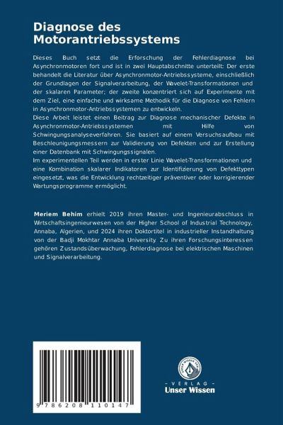 Dieses Buch setzt die Erforschung der Fehlerdiagnose bei Asynchronmotoren fort und ist in zwei Hauptabschnitte unterteilt: Der erste behandelt die Literatur über Asynchronmotor-Antriebssysteme, einschließlich der Grundlagen der Signalverarbeitung, der Wavelet-Transformationen und der skalaren Parameter; der zweite konzentriert sich auf Experimente mit dem Ziel, eine einfache und wirksame Methodik für die Diagnose von Fehlern in Asynchronmotor-Antriebssystemen zu entwickeln.Diese Arbeit leistet einen Beitrag zur Diagnose mechanischer Defekte in Asynchronmotor-Antriebssystemen mit Hilfe von Schwingungsanalyseverfahren. Sie basiert auf einem Versuchsaufbau mit Beschleunigungsmessern zur Validierung von Defekten und zur Erstellung einer Datenbank mit Schwingungssignalen.Im experimentellen Teil werden in erster Linie Wavelet-Transformationen und eine Kombination skalarer Indikatoren zur Identifizierung von Defekttypen eingesetzt, was die Entwicklung rechtzeitiger präventiver oder korrigierender Wartungsprogramme ermöglicht.