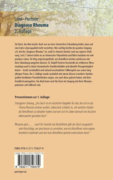 Die aktualisierte 2. Auflage zeigt, dass es auch mit einer chronischen Erkrankung möglich ist, eine hohe Lebensqualität zu erzielen, wenn man gelernt hat, positiv mit der Krankheit umzugehen. Das Leben, der Alltag, die Beziehung und auch das Berufsleben werden nicht in Theorie beschrieben, sondern von einer seit 21 Jahren an chronischer Polyarthritis erkrankten Patientin, die mit der Diagnose "Rheuma" leben lernen musste, es auf vielen schwierigen Umwegen auch gelernt hat und heute ein sehr positives Leben führt. Der erfahrene Rheumatologe beschreibt leicht verständlich verschiedene Krankheitsbilder des rheumatischen Formenkreises, begleitet von sehr anschaulichen Fallbeispielen aus seiner langjährigen Praxis, wobei verschiedene Therapieoptionen aufgezeigt werden. Die 2. Auflage wurde um die neuesten Behandlungskonzepte erweitert. Kurzbiografien berühmter Persönlichkeiten zeigen, wie diese gelernt haben, mit ihrer schweren Krankheit umzugehen. Dieses Buch soll nicht nur Betroffenen Mut machen, sondern kann auch für Ärzte im Umgang mit ihren Rheumapatienten sehr hilfreich sein.