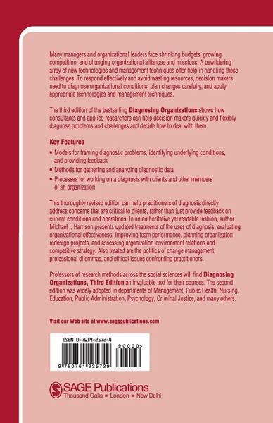 How can organizations handle the opportunities and threats posed by rapidly changing markets and external conditions? How can they improve their overall effectiveness? The Third Edition of Diagnosing Organizations contains up-to-date treatments of techniques and models for diagnosing how organizations deal with challenges like these. The book also shows how consultants and applied researchers can help managers find ways to enhance organizational effectiveness. The completely revised edition of this best-selling book presents the latest techniques for gathering and analyzing diagnostic data. It also covers models and methods for diagnosing organizational designs, everyday practices, fits among organizational components, organizational politics, and power relations. Ethical and political dilemmas of consulting and diagnosis are also explored. The book retains its original coverage of the process of working with members of a client organization to plan and administer a diagnostic study and communicate its results.